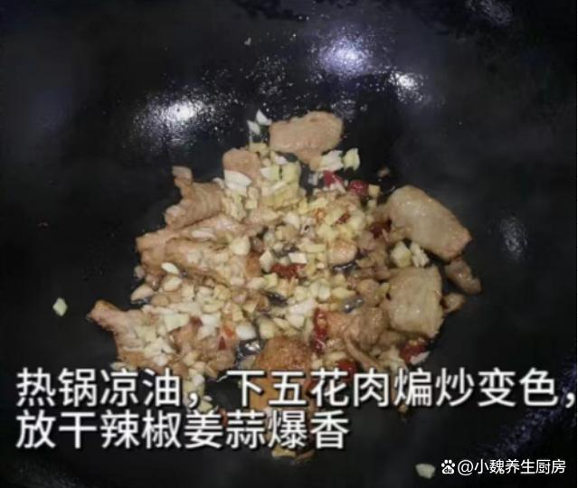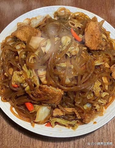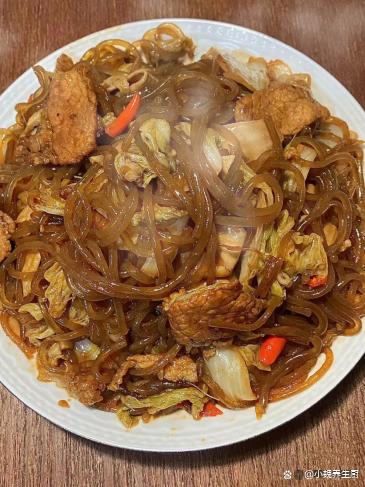 转眼到了新年的第一个月,每年年初都是最繁忙的日子,到了月底就空闲起来,马上要迎接春节的来临,感觉现在大街小巷都不热闹,原来是街上太冷清了。现在还处于冬季的最后阶段,这几天一直在降温,周围的省份都在下雪,只有湖北没有下雪,但是温度已经低到个位数,感觉到天气阴冷潮湿,让人提不起精神来,食欲每况愈下。今天分享我们家晚餐常吃的一道拿手菜——干豆皮白菜粉条焖肉,风味独特,香味扑鼻,总吃不腻。冬天降温后,有钱没钱,多给家人吃这菜,营养美味,增强免疫!  【干豆皮白菜粉条焖肉的食谱解析】 食材清单:选购干豆皮40克左右(干豆皮又叫腐皮,是一种传统的加工食材,,是用豆浆烧煮后,凝结干制而成的豆制品,含有丰富的蛋白质、脂肪、碳水化合物、纤维素等营养成分,口感独特,可以荤素搭配,平常记得要多囤点),选购新鲜五花肉半斤(不喜欢吃肥肉,可以用里脊肉替代,但是肉质一定要非常新鲜的),老姜一大块,若干个小米辣,生抽和老抽少许,干辣椒几个,若干个大蒜头,食用油少许,红薯粉条少许(粉条可以做成很多菜肴,粉条非常有韧性),白菜200克,温热水少许,半勺料酒,胡椒粉和食盐若干,其他。 详细制作顺序: 1:提前准备好红薯粉条,白菜,五花肉和干腐皮等食材,先把干腐皮放在容器里,加上适量温水和食盐,将干腐皮提前泡软,洗净切成若干小块,控干水分,备用。2:切掉白菜的根部,去掉老一些的白菜帮,叶片清洗干净,或者用清水浸泡,捞出控干水分,切成大小相同的块状。 3:小米辣洗净去蒂,切成若干小圈,干辣椒洗净切成细段,大蒜坨去皮切碎成蒜末,生姜也切成细末,备用。 4:提前把猪肉反复洗净,改刀顺纹切成若干片状,肉片放在容器中,加上一小勺料酒,放入少许生抽和老抽,加上食盐少许,抓至均匀,也可以加上一些嫩肉粉,腌制8到15分钟。5:红薯粉条用温水泡发好,切成2半,准备好腌制好的肉片,白菜和其他食材,开始烹饪这道干豆皮白菜粉条焖肉。 6:锅底提前预热一会儿,记得要热锅冷油,倒入肉片快速煸炒,放入干辣椒,蒜末和姜末炒香,将肉片炒至变色。 7:放入白菜,粉条和干腐皮,加上两勺生抽和一勺老抽,一勺蚝油,最后加上食盐和鸡精等佐料。 8:加上少许开水,盖上锅盖焖煮一会儿,最后放入一些小米辣点缀,大火收汁,干豆皮白菜粉条焖肉就出锅了,过年过节都可以吃,超级下饭。