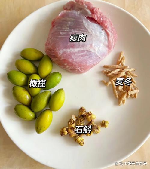 进入2024年龙年,迎接新的一年,正值一年中最冷的日子,很多长辈们称为“数九寒天”,过了大寒节气以后,天气会非常恶劣,气温会非常低,寒冷的天气让人手脚冰凉,身体抵抗力低下,许多疾病会找上门。由于冬天的天气很奇怪,昼夜的温差特别大,经过一冷一热之后,就很容易感冒,加上最近流感病毒高发,这个时候主要是提升自己的免疫力。最近老公一直说嗓子疼,估计是感冒了,这几天都在喝热水,打了点滴就好了,为了预防孩子也中招,准备每周给家里人煲汤,增强免疫,让疾病远离你。嗓子疼最怕喝“这汤”,简单炖一锅,润肺利咽,早食早受益。  【青橄榄麦冬石斛瘦肉汤的食谱解析】 食材明细:选购新鲜青橄榄60克(青橄榄是南方特有的水果,北方人没有吃过,口感清甜多种,味道独特,非常适合拿来炖汤,能够起到润喉利咽,可以预防咳嗽和感冒,搭配瘦肉炖汤是绝配),选购350克精瘦肉(可以选择猪腿肉,肉质要色泽红润,摸起来有弹性,闻起来无异味 ),麦冬30克左右,铁皮石斛35克左右,少许生姜和香葱,冷水和纯净水若干,食盐若干,料酒两勺,胡椒粉一小勺,其他。 详细制作顺序: 1:提前准备好青橄榄,铁皮石斛,麦冬和瘦肉,先把铁皮石斛用温水泡发,生姜切成若干片状,备用。 2:青橄榄放在一个容器里,加上少许食盐,用手不停地揉搓,清洗果皮的脏东西,反复用流水冲洗干净,对半切成两半,备用。 3:将精瘦肉去掉筋膜,反复冲洗干净,切成麻将大小的块,锅中加上一大碗清水,倒入瘦肉块,也可以放入一些姜片,调入少许料酒去腥,把瘦肉块焯烫处理,用温水冲洗掉浮沫。4:麦冬提前洗净,准备好煲汤的砂锅,锅底放入焯水好的瘦肉块,放入青橄榄,麦冬和石斛,加上一些生姜片,加上纯净水1000毫升,这样炖出来的汤品更鲜美。 (www.ws46.com) 5:中途撇去一层浮沫,大火将其炖煮开,然后小火焖煮一个小时左右,让几种食材的营养煮到汤里。 6:出锅之前,调入一丢丢胡椒粉,加上一小勺食盐调味,焖煮几分钟即可,有条件可以放入枸杞子,关火出锅,这道青橄榄麦冬石斛瘦肉汤就烹饪完成了。 青橄榄麦冬石斛瘦肉汤是一款不错的养生汤,南方人非常爱喝,主要选用青橄榄,石斛和瘦肉制作而成,简单炖一锅,汤汁鲜美,营养很出色,能够滋阴润肺,润肺利咽,让嗓子更舒服,早食早受益。