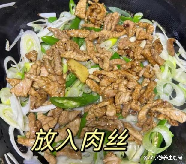时光匆匆,一年就要过完了,到了寒冬腊月,再过一段日子,就要迎来春节,春天也离我们更近了,我们现在还处于冬末阶段,冬天过去还有倒春寒,寒冷的天气会伴随很长时间,天冷不仅仅要多穿衣,还要注意饮食调整,不能顿顿吃大鱼大肉,平常要多参加运动,少熬夜加班。今天推荐一道非常开胃的快手菜——青椒大葱炒肉丝,吃起来非常解馋,小白都能够学会,赶快学起来吧。冬季胃口差,莫要慌!建议要多吃这菜,解馋开胃,给家里人露一手。  【青椒大葱炒肉丝的食谱解析】 食材明细:选购半斤猪肉里脊(猪肉里脊又叫梅条肉,一头猪两条里脊肉,肉质鲜嫩,价格偏贵一些,非常适合拿来做炒肉丝),大葱2根,青椒几个,生姜一小块,少许食用油和辅食油,生抽和老抽若干,少许玉米淀粉(或者用生粉也可以,让肉丝的口感更佳,但是不能放太多),少许胡椒粉,食盐若干,几个大蒜坨,原味酱油一勺,鸡精半勺,其他佐料。
