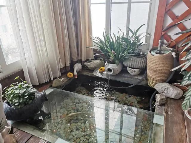 种花种花,遛狗,逗鱼,这是一种很惬意的生活,但对于一般的家庭来说,这种悠闲的生活是无法想象的。 但是,你有没有尝试过,把阳台做成一个小“室内庭院”呢? 江苏一位32岁的中年妇女,不但在自己的阳台搭了个“室内庭院”,而且还自己挖“坑”养鱼,在家真的可以和鱼儿玩耍了。 这是一个多功能的鱼塘,绝对是一场视觉盛宴。