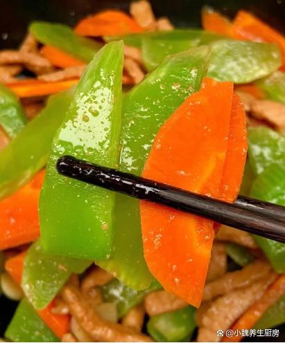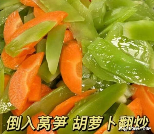 时光荏苒,时间节点到了1月下旬,时间过得好快呀,一个月就要过完了,冬天马上也要结束了,虽然到了冬末阶段,但还是逃不了寒冬的考验,北方人习惯了零下低温的天气,到了南方才体会到寒冬的痛苦,不管是外面还是室内,都是非常寒冷的,两脚都是冰凉的,感觉干活也没有力气。冬天,菜市场的人很少,基本上都是一些长辈们,每到周末都会热闹起来,会囤积一些蔬菜,比如说萝卜和白菜,非常容易储存,吃法也非常多。今天准备用胡萝卜,青笋和瘦肉制作一道菜肴——青笋胡萝卜炒瘦肉丝,好看又好吃,爽口开胃,总吃不腻。1月,遇见这菜别错过,荤素搭配,营养全面,不懂吃怪可惜了。  【青笋胡萝卜炒瘦肉丝的食谱解析】 食材清单:挑选300克青笋(青笋又名莴笋,是一种很像冬笋,叶子和根茎都为绿色,都是餐桌上的热门蔬菜,口感清甜爽口,可以搭配许多食材炒着吃),选购胡萝卜一根(胡萝卜又叫红萝卜,市面上分为两种颜色,同属一个品类,胡萝卜的矿物质和胡萝卜素含量高,热量非常低,冬天可以多囤一些胡萝卜),一些大蒜头,食用油若干,冷水少许,水淀粉一小碗,猪肉里脊250克,适量生抽和蚝油,料酒少许,半勺生抽和一勺老抽,少许食盐,淀粉少许,其他。 正确做法: 1:提前准备好青笋,胡萝卜和猪肉里脊,先把猪肉里脊清洗干净,改刀顺纹切成片状,然后切成长条细丝,切记不能切太粗了,影响肉丝的口感。 2:瘦肉丝放在器皿里,放入一些生姜丝,加上半勺料酒,加上生抽一勺,加上一勺蚝油和半勺老抽,调入少许盐调味,最后裹上薄薄的淀粉,迅速抓拌几下,腌制一小会儿。3:锅底慢慢烧热乎,加上适量食用油,油温烧热乎,倒入腌制好的肉丝,用锅铲迅速翻炒均匀,炒至肉质变色,盛出备用。4:青笋剥掉叶子,提前把青笋的外皮去掉,切掉两头洗净,斜切成若干片状,胡萝卜也洗净去皮,切成若干片状。 5:一些大蒜去皮切成蒜片,锅中加上少许清水煮沸,倒入胡萝卜和青笋焯水,不要煮太长时间,让口感非常脆爽。 6:锅中烧热加上油,放入一些蒜片炒香,倒入胡萝卜和青笋炒至断生,加上一勺生抽和蚝油,加上半勺白糖和食盐调味。