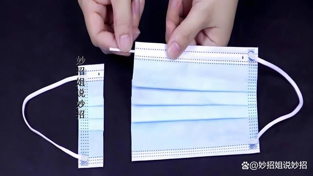 洋葱全部切成了丁之后,我们拿一个用过的口罩,剪开一边,取出鼻梁位置的铁丝并放置一旁,稍后还会用到。撑开口罩,你会发现它分为三层,其中内层是网纱材质,透气但不透水,这正好可以作为一个免费的、实用的网纱袋子。把切碎的洋葱装入这个自制的网纱口袋中。
