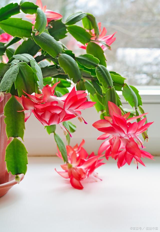 二、蟹爪兰的日常养护浇水:蟹爪兰喜欢湿润的环境,但浇水时要避免盆土积水,以免造成根部腐烂。在生长期和开花期,保持盆土湿润即可;在休眠期,应适当减少浇水,保持盆土微干。浇水时,可以遵循“见干见湿,浇则浇透”的原则。 施肥:蟹爪兰在生长期需要充足的养分,可以每隔15天左右施加一次腐熟的稀薄液肥或复合肥。在开花前,应增施磷钾肥,以促进花芽分化和花朵开放。施肥时,要注意避免肥料直接接触植株,以免烧伤根部和叶片。 光照:蟹爪兰喜欢半阴的环境,不能长时间接受强烈的阳光直射。在春秋季节,可以将蟹爪兰放置在光线明亮的地方,接受散射光的照射;在夏季,应适当遮阴,避免暴晒;在冬季,由于光照较弱,可以适当增加光照时间,以促进植株生长和开花。