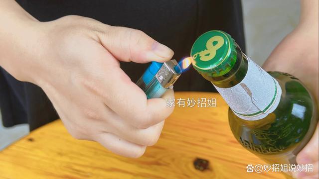 当瓶盖被烧了十几秒,已经烧热后,我们再用纸张或者其他可以隔热的东西覆盖在瓶盖上,接着稍微用力一揭,瓶盖也就被打开了。利用打火机打开瓶盖的原因很简单,它就是利用了一个热胀冷缩的原理。啤酒中是有很多气体的,当我们用打火机加热瓶盖时,里面的气体就会膨胀,在压力的作用下,我们也就能轻松将瓶盖给揭开来了。