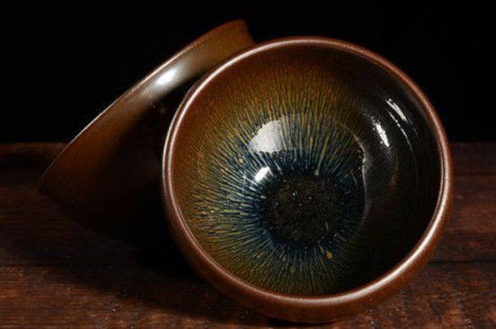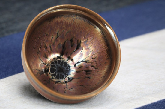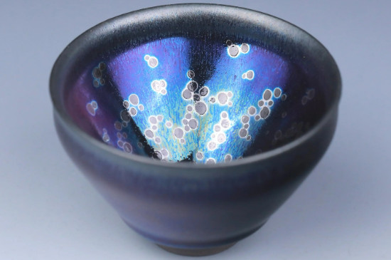 指的是建盏上的颜色像鹧鸪鸟羽毛上的花纹一样,形状一般为椭圆形,颜色一般为黄色、银色和黑色三种,层次比较分明,看起来非常独特,鹧鸪斑颜色的建盏也较为珍贵。 5、曜变