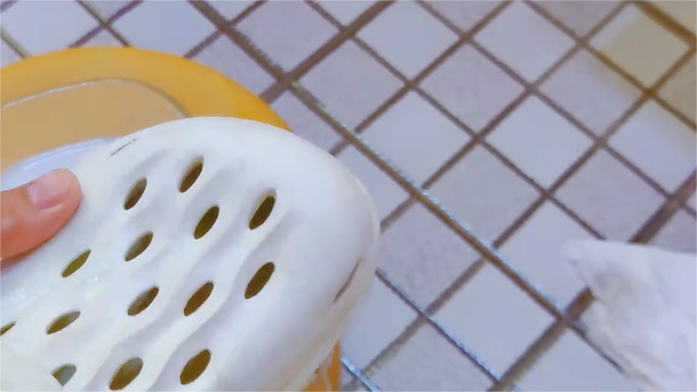 4,用百洁布蘸取适量的热肥皂水,然后用力擦拭鞋面。注意要确保每一个角落都得到充分的清洁,不要遗漏任何一处污渍。 5,待全部擦拭完毕后,用清水将鞋子冲洗干净。此时你会发现,原本沾满灰尘的洞洞鞋已经焕然一新,重现了它原有的色泽与质感。
