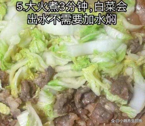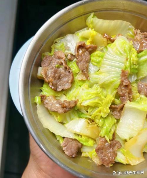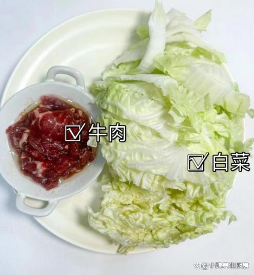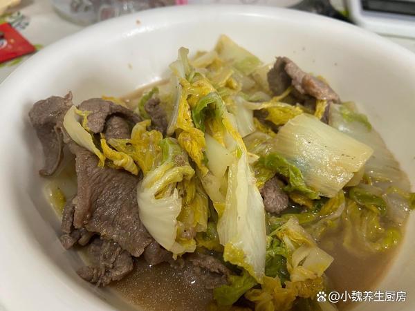 转眼就到了新年,一月是一年的开端,一年又一年,时间过得非常快,还过几天就要迎来大寒节气,这个时候寒潮来袭,阴风阵阵,大地一片萧条,很多动物都冬眠了。冬天需要储备能量,随着气温的降低,人的精神会变差,阳气减弱,我们需要照顾好自己的身体,多吃应季的蔬菜,比如说白菜。白菜是平民的蔬菜,几毛钱一斤,口感非常清甜,荤素都能够搭配,吃起来特别解腻。今天准备用白菜和牛肉制作一道美味家常菜——白菜炒牛肉片,几分钟就出锅了,赶紧学起来吧。大寒将至,有钱没钱,多给家人吃这菜,荤素搭配,增强抵抗力!  【白菜炒牛肉片的具体做法】 食材明细:选购一颗新鲜白菜(白菜又叫黄芽菜或大白菜,白菜是平民的蔬菜,经过严寒的白菜梗好处,甜度更高,可以生食、煮汤、炒菜或腌制成酸菜,富含大量的膳食纤维和维生素等物质,多吃能够补充营养,预防疾病的作用),选购新鲜嫩牛肉200克左右(牛肉是肉类最受欢迎之一,牛肉一定要色泽鲜艳红润,尽量要切薄一些,牛肉要提前腌制调味),几个大蒜头,冷水少许,食用油少许,半块生姜,半勺白糖,少许食盐,鸡精和胡椒粉少许,其他佐料。 具体制作顺序: 步骤1:提前选购好白菜,嫩牛肉和其他配菜,先把大蒜头去掉外皮,洗净切成若干蒜片,生姜切成一些细丝,备用。步骤2:嫩牛肉反复清洗几遍,切掉多余的部位,逆着纹路切成片状,这样不会破坏纤维物质,肉片用擀面杖敲打,让肉片的口感更佳。步骤3:牛肉片想要口感嫩,加上少许生抽和蚝油,加上半勺食盐和胡椒粉,滴入一小勺食用油,最后裹上淀粉少许,把肉片充分腌制到入味,静置20分钟左右。步骤4:切掉白菜的根部,切掉白菜帮,反复清洗干净,白菜切成若干块状,控干叶片表面的水分,准备好腌制好的肉片和白菜,开始烹饪这道白菜炒牛肉片。