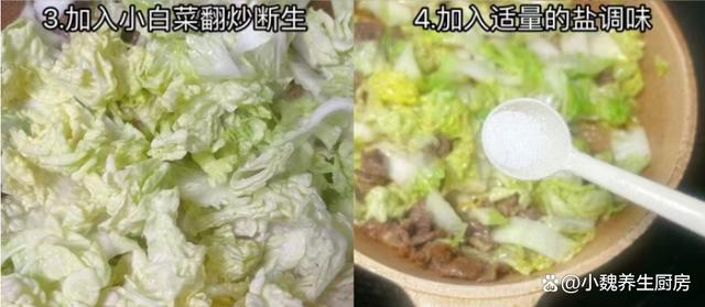 步骤5:起锅烧热,加上冷油烧热乎,滑入腌制入味的肉片,用锅铲迅速翻炒,将肉片炒至变色。 步骤6:倒入白菜炒至断生,叶子炒出水分来,加上少许食盐和白糖,加上一丢丢生抽和蚝油,加上鸡精和其他佐料。 (www.ws46.Com) 步骤7:用锅铲翻动几下,关火盛出,这道白菜炒牛肉片就可以开吃了,冬天一定要多吃它。 白菜炒牛肉片是冬天必吃的菜肴之一,主要用白菜和牛肉搭配而成,简直是绝配,有荤有素,清甜爽口,牛肉非常嫩滑,营养价值很出色,为我们身体提供许多营养,补铁补血,每天吃都不会长肉。 网友们,你们是否掌握这道白菜炒牛肉片的正确做法吗?(上述配图都出自网络)
