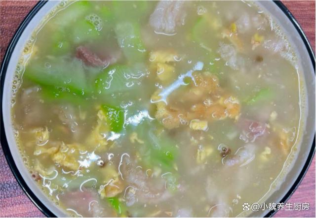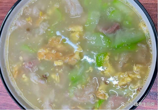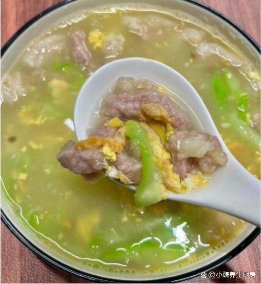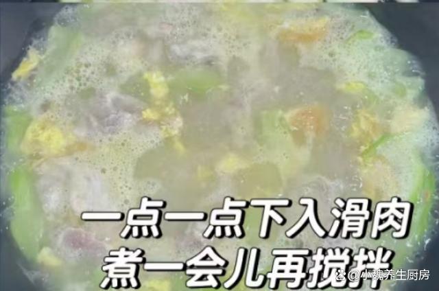 进入新的一年,冬天已经到了最后阶段,冬天天气经历三个阶段,现在处于“数九寒天”之中,马上要迎来四九天,天寒地冻,万物都在冬眠,气温一直在降低,处于阳气很弱的状态,手脚特别冰凉,很容易生病!天气太冷了,饮食上要调整,平常多喝热腾腾的鲜汤,今天推荐一款超级鲜美的汤品——丝瓜滑肉鸡蛋汤,鲜嫩的丝瓜和两样煮一锅,汤汁巨鲜美,老少皆宜,不懂吃怪可惜了。天气寒,要喝汤!有钱没钱,多给家人喝这汤,补足营养,安稳过冬。  【丝瓜滑肉鸡蛋汤的食谱解析】 准备一些食材:选购丝瓜一条(丝瓜又称为“美容瓜”,富含大量的维生素C和抗氧化的物质,对于皮肤很有好处,丝瓜鲜嫩清甜,我们家喜欢用来煮丝瓜汤,喝起来非常清甜美味),几枚鸡蛋,食用油若干,挑选新鲜猪前腿肉200克,冷水和开水少许,一小勺红薯淀粉,若干根香葱,少许食盐,原味酱油少许,少许食盐和胡椒粉,半勺味极鲜,姜片2片,其他佐料。 正确做法: 第一:提前选购好嫩丝瓜,前腿肉和鸡蛋等食材,提前将生姜去皮,切成若干细丝,备用。 第二:提前把丝瓜的外皮去掉,切掉两头洗干净,切成长条形或滚刀块,丝瓜块用清水泡一泡,避免维生素出现氧化,捞出沥干水分。第三:前腿肉去掉猪皮和肥肉,瘦肉要先清洗干净,然后顺着纹路切片,瘦肉片要越薄越好,全部放在容器里,备用。 第四:加上少许原味酱油,加上半勺食盐和胡椒粉,加上少许红薯淀粉,加上少许清水,用手反复抓拌均匀,给肉片上浆。 第五:鸡蛋磕在碗中,用筷子迅速搅散,调入半勺白醋去腥,加上少许水淀粉,充分搅拌均匀。 第六:锅中加上一些食用油,油温烧热至7成,淋入调好的鸡蛋液,两面煎至定型,炒成若干小块。