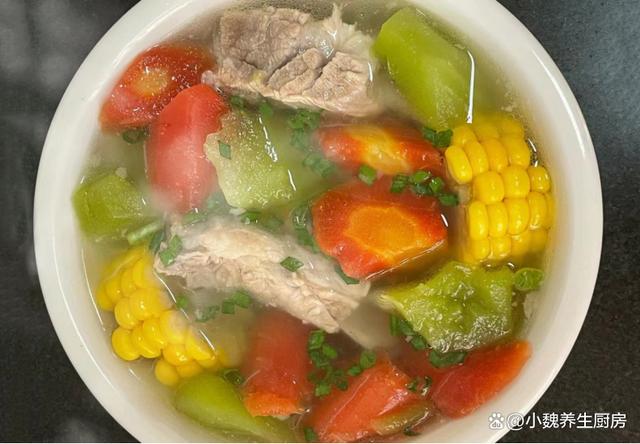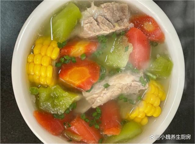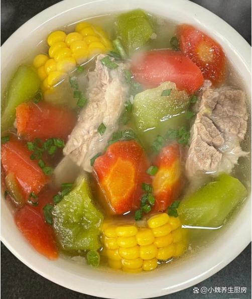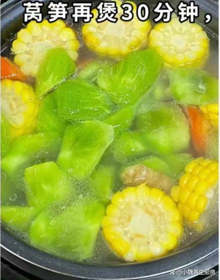 转眼就到了冬季的最后一个月,寒风凛冽,天寒地冻,这几天都在下雨,据说再过几天要下雨了,这几天一直在降温,让人身体虚弱,人体的各项机能减弱,抵抗力很差。到了冬季,我们要多增添衣物御寒,多吃热乎乎的饭菜,多喝各种暖和和的汤品,为身体补充营养,应季而食,好处多多。今天准备用玉米,莴笋,胡萝卜和排骨制作一款汤品——莴笋胡萝卜炖排骨汤,经过小火炖煮,汤汁更加鲜美,聪明人经常喝它。冬季喝汤,胜过吃肉!多给家人喝这汤,补足营养,健康度过冬天。  【莴笋胡萝卜炖排骨汤的食谱解析】 食材明细:选购两根新鲜胡萝卜,玉米200克(玉米是常见的主食之一,玉米吃起来非常清甜,色泽非常好看,可以作为主食,还可以拿来煲汤喝),新鲜大葱一根,生姜15克左右,冷水和温水少许,新鲜莴笋200克(莴笋又名青笋,是一种冬季的时令蔬菜,根茎为青绿色,富含钾元素和维生素,莴笋吃起来清甜爽口,平常能够素炒,凉拌或煲汤),选购350克新鲜肋排,少许料酒,食盐和胡椒粉少许,其他佐料。 具体制作顺序:第一步:提前选购好莴笋,胡萝卜,玉米,排骨和其他食材,先把莴笋的叶子去掉,切掉多余的部位,去掉一些白茎,洗净切成滚刀块,备用。第二步:将新鲜玉米的叶子去掉,切掉多余的部位,玉米切成大小相同的块,用盐水浸泡或洗净,控干表面的水分。第三步:大葱切掉葱须,洗净切成小段,生姜洗净去皮,切成若干片状,两个胡萝卜洗干净,削皮切成若干滚刀块,备用。