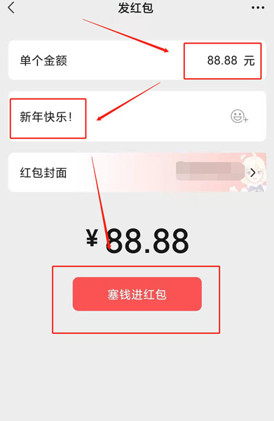 6、写好红包金额后,点击“塞钱进红包"就可以用自定义的红包封面发红包。