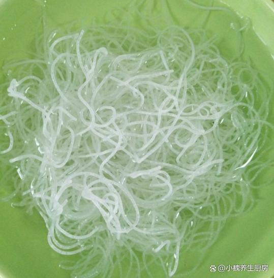 第二步:粉丝放在碗中,用温水泡发至变软,香葱洗净切成细葱花,大葱切成小段,小米辣切成若干小圈。