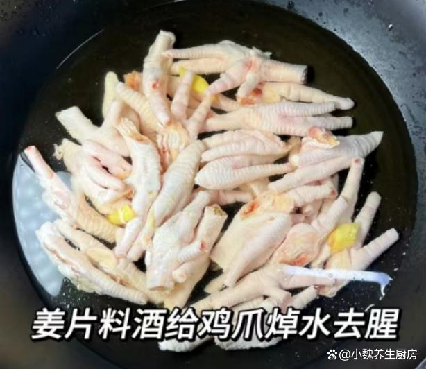 正确制作顺序:第一步:提前选购好鸡爪,黄豆和其他食材,先把鸡爪放在容器里,加上适量冷水解冻,用剪刀去掉脚趾甲的部分,彻底将鸡爪清洗几遍,这样吃起来更放心一些。第二步:将大葱剥掉外皮,洗净切成若干小段,老姜去皮切成若干片状,干辣椒洗净切成小段,大蒜头剥掉外皮,切成若干蒜片,备用。 第三步:另外起锅,锅中加上适量冷水,倒入洗净的鸡爪,放入若干片老姜和葱段,淋入少许料酒去腥,将其焯水3到5分钟。第四步:撇去一些浮沫,捞出用温水冲洗干净,或者投凉水浸泡,这样鸡爪的口感更好,最后控干表面的水分。