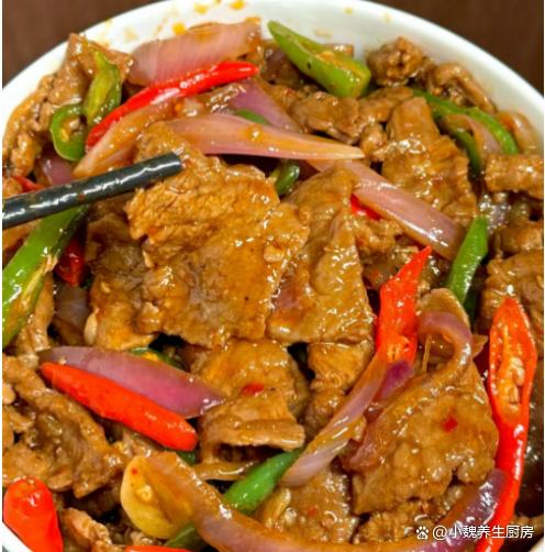 步骤7:倒入青椒丝和小米辣,倒入提前炒熟的牛肉片,加上少许生抽和蚝油,出锅前加上鸡精,食盐,白糖和胡椒粉等佐料,翻炒几下,装盘出锅,这道洋葱辣椒炒嫩牛肉就烹饪完成了。 洋葱辣椒炒嫩牛肉是一道非常美味的硬菜,饭店一盘100多,主要选用牛肉,洋葱和辣椒制作而成,菜肴闻起来非常香,肉质非常嫩滑,香辣入味,刺激我们的食欲,牛肉属于高蛋白高营养的肉类,冬天进补要多吃,让全家人都有食欲,不懂吃怪可惜。 网友们,你们是否吃过这道洋葱辣椒炒嫩牛肉呢?(文中的配图都出自网络)