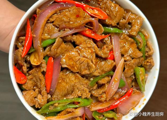 进入一月,来到冬季的仲冬,很多人称为“冬月”,是每年最寒冷的日子,狂风呼呼地吹着,很多地方早上结冰,晚上非常阴冷潮湿,昼夜的温差非常大,冷空气来袭,让人全身都冻住了,身体许多许多营养。冬天过半,记得要添衣御寒,饮食方面要作出调整,多吃高蛋白高营养的食材,比如说牛肉,猪肉或羊肉,记得少许生冷和寒性的食材,为身体补给人体所需的营养。今天准备用牛肉,洋葱和辣椒制作一道家常美食——洋葱辣椒炒嫩牛肉,牛肉的肉质特别鲜嫩,营养全面,一家人都爱吃。冬天,有钱没钱,别忘记吃这菜,营养又美味,为开春打好基础。  【洋葱辣椒炒嫩牛肉的食谱解析】 食材清单:选购新鲜洋葱一个(洋葱又叫葱头,分为紫洋葱和白洋葱,紫洋葱的色泽好看,还可以激发我们的食欲,一般搭配肉类一起吃),生姜若干片,选购新鲜牛肉里脊400克(牛肉是很受欢迎的肉类之一,我们要挑选色泽红润,按压起来有弹性,这样的牛肉更加鲜嫩,牛肉一定要提前处理和腌制入味),少许植物油,干辣椒几个,若干个大蒜头,辣椒面一勺,小米辣几个,几个青线椒,少许生抽和老抽,少许玉米淀粉,冷水少许,鸡精和食盐若干,半勺白胡椒粉,其他。 具体制作步骤:步骤1:提前选购好牛肉里脊,洋葱和辣椒等食材,切掉紫洋葱的两头,撕掉不新鲜的一层皮,从中间对半切开,用盐水浸泡一会儿,然后切成长条细丝,控干水分备用。步骤2:把干辣椒洗净去蒂,切成若干小段,大蒜头剥掉蒜皮,切成若干蒜片,几片生姜切成细丝和细末。步骤3:小米辣和青椒洗干净,去掉蒂切成小段,香葱切成葱花段,牛肉里脊反复冲洗干净,去掉多余的部位,切成厚度一样的薄片,可以用刀背敲打,让牛肉更有弹性,口感更好。 步骤4:牛肉片放在器皿中,加上生抽和老抽少许,加上玉米淀粉少许,调入一些食盐腌制调味,滴入少许辅食油,锁住牛肉片的水分,让牛肉片充分腌制入味(大概腌制半刻钟) 步骤5:让锅底慢慢烧热,调入少许食用油,油温烧热至6成热,滑入腌制好的牛肉,用锅铲快速煸炒片刻,让牛肉炒至变色,盛出备用。