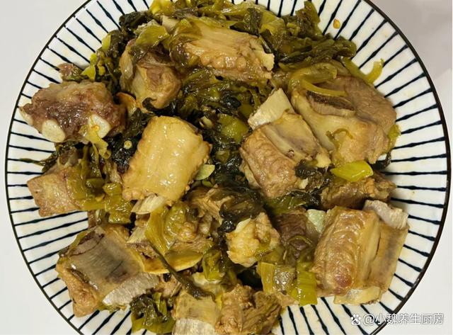 已经到了新年,迈入到2024年的门槛,年初是冬天的第二阶段,很多人称为仲冬,今年的冬天还算暖和,但是早晚温差大,让人非常不舒服。据说再过几天,天气会迅速降温,进入到“四九天”,雨雪天气将要来临,人体的免疫系统减弱,孩子和老人容易感染,我们要多参加运动,多吃一些热菜或热汤。今天准备用排骨和酸菜制作一道美味菜肴——酸菜焖排骨,酸菜吃起来特别开胃,排骨吃起来软烂脱骨,吃起来特别有胃口。天冷后,有钱没钱,这菜记得要常吃,营养又美味,招待客人有面子。  【酸菜焖排骨的食谱解析】 食材清单:挑选好新鲜排骨600克(排骨也是猪骨的其中之一,排骨的骨头和肉分明,食用方法非常多样性,我们家喜欢红烧或炖汤,冬季记得要多喝排骨汤,为身体储备大量的营养),若干根香葱,生姜一大块,大葱半根,香叶若干片,桂皮少许,八角几个,若干瓣大蒜头,干辣椒几个,食用油若干,一包酸菜(酸菜是一种非常平价的食材,主要用芥菜制作而成,口感酸脆可口,可以搭配许多肉类炖着吃),少许料酒,生抽和蚝油若干,鸡精和食盐少许,其他佐料。 正确制作顺序:1:提前选购好排骨,酸菜和其他配菜,将几根香葱洗干净,打成葱姜,生姜切成若干片状,备用。2:将大葱洗净去皮,切成若干小段,干辣椒洗净去蒂,大蒜去皮切成蒜片,八角,香叶和桂皮洗净,备用。3:把酸菜用清水冲洗干净,切成若干小块,控干表面的水分,将排骨提前剁成小块,用清水冲洗掉血丝,或者用冷水泡一泡,捞出备用。 4:另外起锅,锅中倒入排骨块,加上葱结和姜片,记得多加一些冷水焯水,中途加上花雕酒或料酒,逼出排骨的血腥味,捞出用温水洗净,备用。 5:锅中放入排骨,放入大葱,桂皮,百家和相片,丢入一些大葱,加上少许清水,焖煮40分钟,盛出备用。