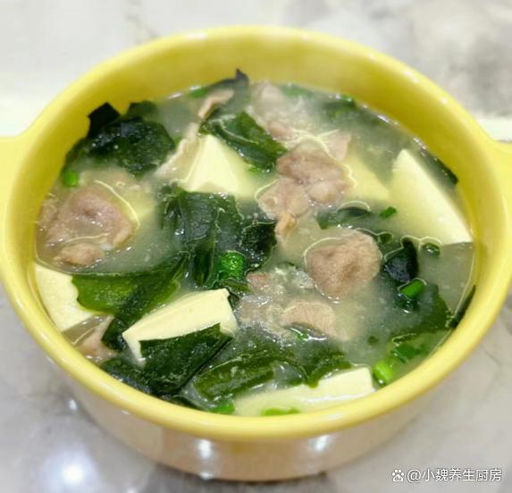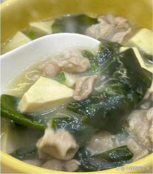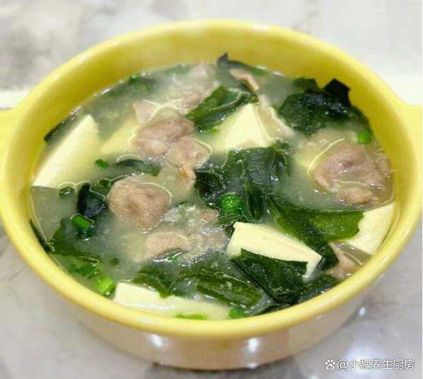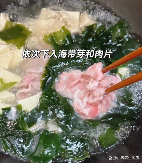 转眼之间,2024年就来临了,冬天进入到寒冬阶段,从冬至开始算,每隔九天为“一九”,依此类推,现在我们处于“三九天”,这个时候的天气非常阴冷,温度一天比一天低,走在路上都直抖腿,感觉到手脚都冰冰凉凉的,大家一定要注意多穿一些衣服,用来抵御寒冷的冬天。冬天到了,天气太寒冷了,人的抵抗力非常差,身体很虚弱,我们需要按时补充营养,多喝各种鲜美的汤品,比如说这款海带苗肉片豆腐汤,保留了几种食材的营养价值,喝起来超级鲜美,暖心暖胃,增强抵抗力。“三九不补,开春受苦”,平常要多喝这汤,汤鲜味美,补钙强免疫。  【海带苗肉片豆腐汤的食谱解析】 食材清单:选购海带苗(海带苗又叫海带芽,是高营养的海中蔬菜,是海带最嫩的部位,海带的营养价值比很多蔬菜都要高,富含钾元素,钙铁等营养,一般用来凉拌或煮汤,更加利于营养的消化和吸收),选购200克猪肉里脊(或者选择牛肉里脊,肉质要非常红润,摸起来要很有弹性,肉片需要提前腌制处理),豆腐250克(豆腐一定要挑选嫩豆腐,买回来用清水泡一泡,避免出现发酸的情况),少许冷水和温开水,少许红薯淀粉,生抽少许,适量食盐,鸡精和胡椒粉少许,若干根香葱,其他调味品。 正确制作顺序: 第一步:提前选购好嫩豆腐,海带苗,猪肉里脊和其他食材,先把海带苗用温开水泡发几分钟,清洗掉表面的脏东西,切成若干小块,备用。 第二步:嫩豆腐用清水冲洗一遍,嫩豆腐切成若干小块,锅中煮一些清水,煮沸后倒入豆腐块,去掉豆腐的豆腥味,捞出控干表面的水分。 第三步:生姜去皮切成细丝或细末,香葱洗净切成小葱花,猪肉里脊反复洗净,顺着纹路切成薄片。 第四步:瘦肉片放在器皿里,加上少许葱姜水去腥,加上少许红薯淀粉和清水,调入少许食盐腌制,加上胡椒粉半勺,加上原味酱油半勺,将肉片腌制入味。第五步:锅中加上少许猪油,加上葱白和姜片,加上适量开水煮沸,分别下入海带苗和嫩豆腐,小火焖煮几分钟。 第六步:转至小火炖煮,滑入腌制好的瘦肉片,让其烫至变色,调入少许味极鲜,加上食盐和鸡精等佐料,焖煮孩子汤汁入味,撒上香葱和香菜即可。 第七步:关火盛出,这道海带苗肉片豆腐汤就可以开吃了。 海带苗肉片豆腐汤是一款超级鲜美的家常汤品,冬季一定别忘记喝,汤汁十分鲜美,保留了几种食材的营养,富含大量的钙质,蛋白质和维生素,汤品喝起来暖和和的,鲜美极了,为开春打下不错的基础。 网友们,你们是否喝过这款海带苗肉片豆腐汤呢?(文中配图都来自网络)