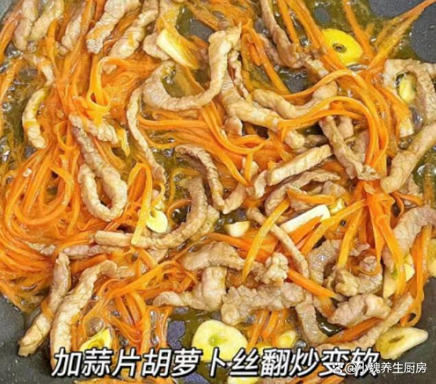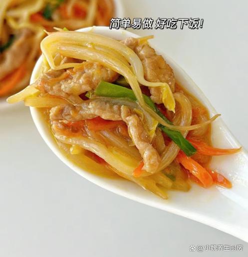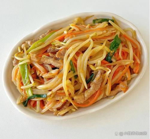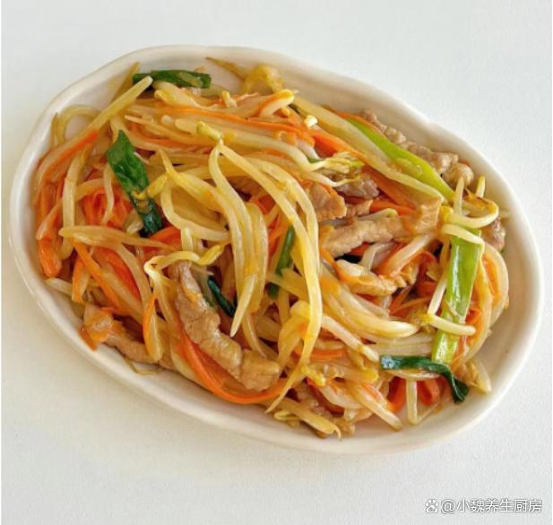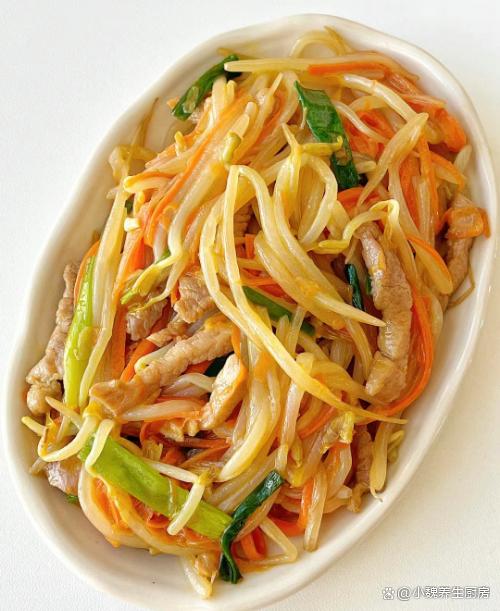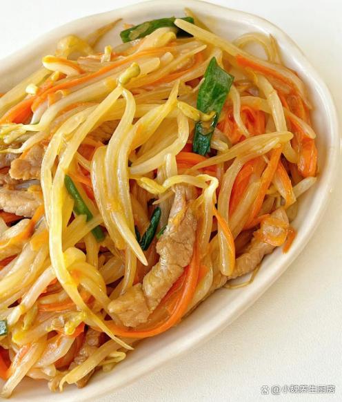 第七步:最后加上食盐和鸡精调味,用锅铲翻炒片刻,装盘盛出,这道胡萝卜豆芽炒瘦肉丝就可以开吃了。 胡萝卜豆芽炒瘦肉丝是一款色泽好看的菜肴,小白都能够学会,主要选用新鲜猪肉,胡萝卜和豆芽菜制作而成,吃起来特别清脆爽口,肉丝也非常嫩滑,吃起来特别解馋,满足日常身体所需的营养,越吃越过瘾。 网友们,你们是否掌握这道胡萝卜豆芽炒瘦肉丝的正确做法吗?(文中的配图都出自网络)