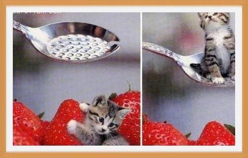 我们也放几张皮斯堡猫日常萌态吧。看它坐在汤匙里眼睛望着主人。仿佛很委屈的在说:主人你不是也要把我当成食物吧,我还不够你塞牙缝呢?瞧这几个鲜红的草莓和小猫咪在一块。更加能看出皮斯堡猫的精致小巧哦。 |