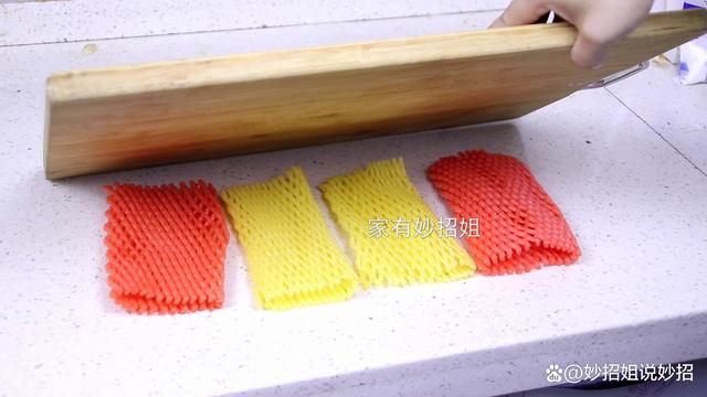 妙用五:案板防滑。 平常我们在使用案板处理食材的过程中,经常会出现菜板滑动的情况,尤其是灶台有水的时候。一旦菜板滑动,一不小心就可能会切到手。遇到这个问题,我们就可以利用上两个水果网套来解决。方法很简单,我们只需要在菜板下面垫上两个水果网套,之后再来切菜,菜板就不会滑动了。这是因为水果网套增加了案板与台面的摩擦力,案板就不会轻易滑动了。此外,案板下垫了水果网套,我们在剁一些骨头之类的,它还能起到一个减震的作用。如果今天的文章对您有帮助,那就点一个关注,点一个赞,感谢您的支持。