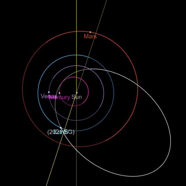 这颗小行星编号为2021 SG,它的直径估计为42-94米,平均直径为68米,是车里雅宾斯克小行星的4倍。它不仅尺寸较大,速度也非常快。相对于地球来说,它飞行的速度是每秒23.8公里,相当于时速8.6万公里。 1.7122695个天文单位,偏心率为0.7234592,轨道周期为27个月。根据推算,它在9月16日最接近地球,距离地球只有24.6万公里,相当于地月距离的0.64倍。