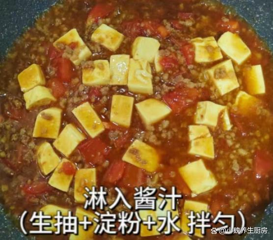 (www.ws46.Com) 7:淋入少许酱油,加上少许水淀粉,加上鸡精和味精半勺,最后加上半勺白胡椒粉,撒上一些葱花点缀,大火收汁,关火盛出,这款番茄肉末豆腐就可以开吃了,我们全家人都爱吃,入口即化,鲜嫩美味,总吃不腻。 番茄肉末豆腐是我们家的拿手菜之一,主要选用了番茄,猪肉和嫩豆腐烹饪而成,嫩豆腐特别鲜嫩,肉末非常细腻,汤汁特别浓郁,吃起来酸甜可口,改善我们的胃口,吃过还想吃,学会给家里人尝一尝。 网友们,你们是否掌握这道番茄肉末豆腐的烹饪方法呢?(以上文中的配图全部出自网络)