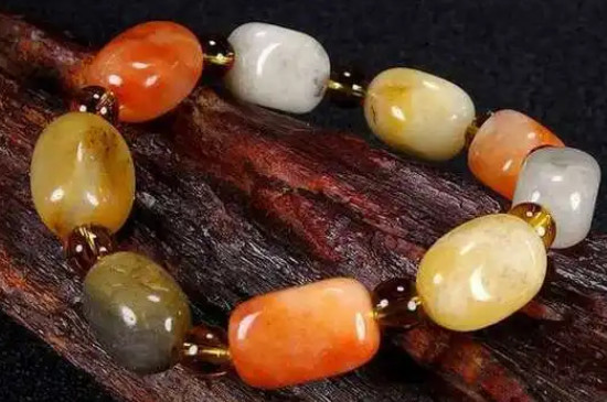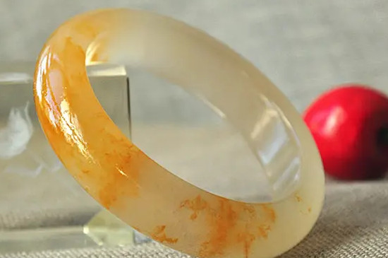 金丝玉是石英质玉,金丝玉产于新疆,主要颜色以红黄白三色为主。可以将蜜蜡涂抹在金丝玉表面隔绝空气,起到保养效果,平时佩戴可放于清水中浸泡2到3小时进行补水。天然金丝玉颜色多为暖色调,内部带有絮状物,仿制的金丝玉多为玻璃或注胶商品,内部伴有圆形气泡。 金丝玉是石英质玉