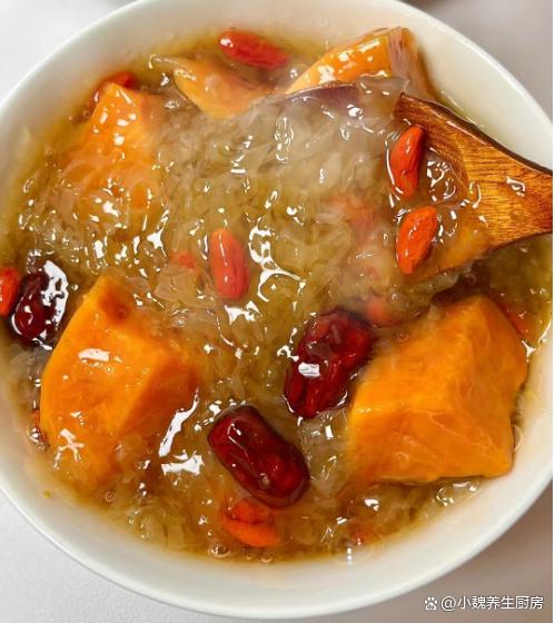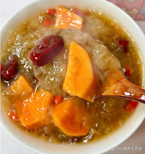 已经到了2024年,2023年过得非常不顺利,希望今年能够有个不错的开始,到了一月份,我们将要迎来小寒和大寒节气,节气的来临,也正是一年最冷的时候,外面的风呼呼的吹,晚上和早上都特别冷。由于气温持续降低,空气里特别干燥,嗓子不舒服,身体很容易着凉,气色会非常差,尤其是女性很容易贫血。人到了中年,都非常注重养生,平常要多喝热乎乎的汤品,比如说这款红薯红枣银耳枸杞汤,红薯是自己家吃不完的食材,用来炖一锅,喝起来很暖和,早食早受益。天冷了,女性要多吃“它”,简单煮一锅,补血养颜,气色越来越好。