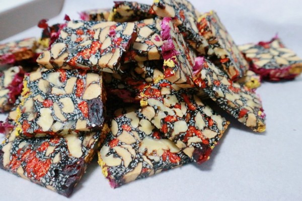 阿胶糕熬制方法熬制阿胶糕的方法有很多,一般家常的阿胶糕,可以配合大枣和核桃仁一起来熬制。首先可以将阿胶打成粉状,然后倒入锅中,再倒入寂寞老黄酒,搅拌均匀以后泡至24个小时,大火熬至开锅以后转为小火。并且在熬制的过程中,不断的用勺子搅拌,以免粘锅。小火一直熬到挂旗,这一步对于熬制阿胶糕是非常关键的步骤。熬制到这种程度以后,可以将事先准备好的黑芝麻,大枣以及核桃仁放入。 |
