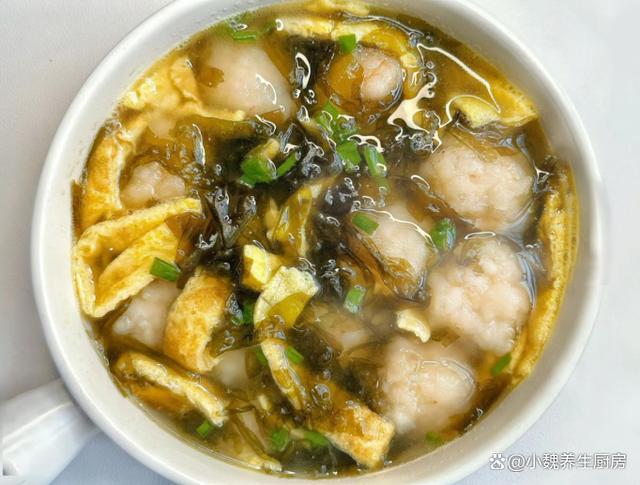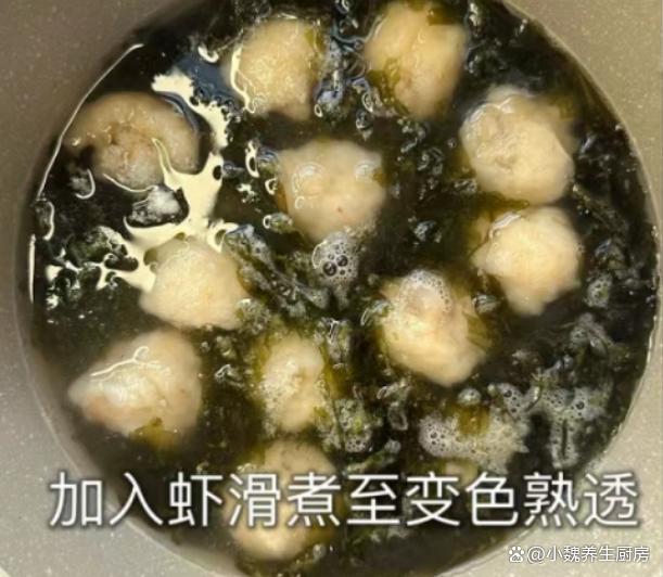 第七步:加上半勺味极鲜提鲜,加上胡椒粉和其他佐料,放入一些鸡蛋丝,小火焖煮一会儿,撒上葱花点缀,出锅了,这款紫菜虾滑鸡蛋汤就可以食用了。 紫菜虾滑鸡蛋汤是一款鲜美十足的汤品,主要选用大虾做成虾滑,搭配紫菜和鸡蛋丝煮一锅,汤色十分好看,鲜美极了,暖胃养胃,补充蛋白质,钙质和多种营养元素,为身体提供大量的能量,天冷后一定要常喝它。 网友们,你们是否掌握这款紫菜虾滑鸡蛋汤的详细做法呢?(上述文中的配图全部来自网络)(www.ws46.coM)