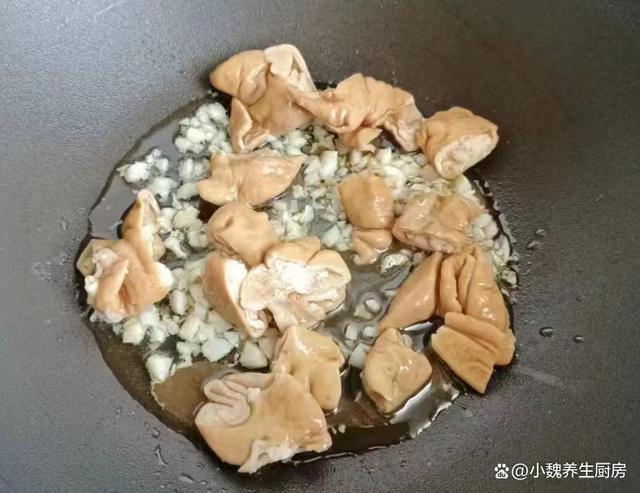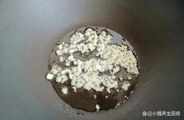 第六步:锅底提前预热,加上少许食用油,油温烧热放入蒜末和葱白,快速爆炒出香味来。