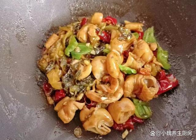 时间转眼即逝,一年又一年,到了2024年以后,再过一段时间就过年了,最近开始清闲起来,平常没有时间做饭,基本上都是上饭店吃饭,上周点了一道酸菜炒肥肠,让人回味无穷,吃过就忘不掉了。最近一段时间,孩子总是说没有食欲,吃猪肉牛肉吃腻了,不如给家里人尝尝这道家常菜肴——酸菜炒肥肠,肥肠和它是绝配,吃起来太香了,下饭下酒都很棒。冬季,宁愿少吃牛肉,也要多吃这菜,酸辣开胃,大人孩子都爱吃。  【酸菜炒肥肠的食谱解析】