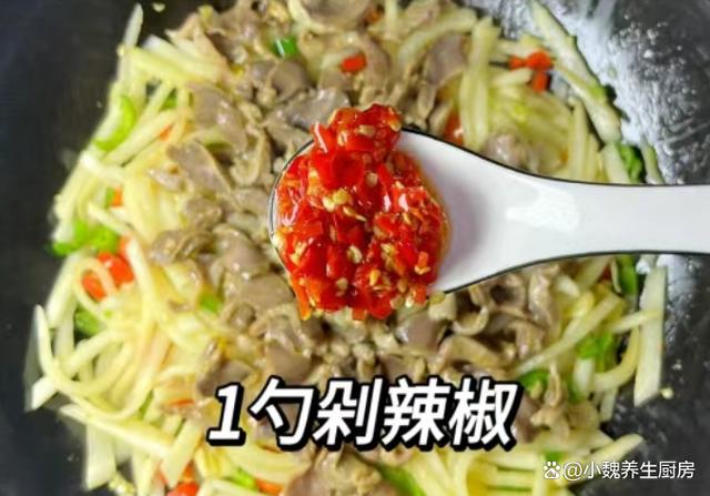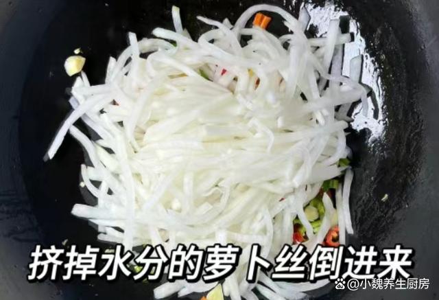 时间转眼即逝了,迈入到2024年新年,过完元旦佳节以后,1月6日就是非常重要的节气,它就是24节气——小寒,小寒是冬季的第五个节气,民间有“小寒大寒,冻成一团”的说法,这个时候的天气极度恶劣,温度降低到冰点以下,很多动物开始冬眠,人也开始变得懒惰起来,身体的能量消耗加速,导致阳气减弱,手脚出现冰凉,而且还会影响我们的胃口。  到了小寒节气,菜市场又热闹起来,都是各种应季的蔬菜,白萝卜就是其中之一,吃起来非常清甜可口,可以荤素搭配,吃起来特别美味。今天准备用白萝卜和鸡胗制作一道美味的家常菜——萝卜丝炒鸡胗,做法很简单,比大鱼大肉还好吃。小寒将至,无论多忙,多给家人吃这菜,应季而食,解馋开胃身体好。 【萝卜丝炒鸡胗的食谱解析】食材清单:选购一根白萝卜(白萝卜是一种特别清甜的蔬菜,食用方法有很多,吃起来非常开胃解腻,白萝卜丝可以用来炒着吃),小米辣若干个,青杭椒几个,若干瓣大蒜头,食用油少许,一小块生姜,选购优质鸡胗400克(或者选择鸭胗,鸡胗是动物鸡的内脏,虽然看起来很脏,但是吃起来非常香),冷水和温水少许,一勺剁椒酱,料酒少许,两勺生抽,一勺老抽,几根新鲜芹菜,食盐和白糖少许,鸡精和胡椒粉少许,白胡椒粉半勺,其他调味品。 正确制作顺序:步骤1:提前准备好白萝卜,鸡胗,辣椒和其他配菜,先把白萝卜去掉外皮,先切成若干片状,然后切成长条细丝,白萝卜丝用盐水浸泡,保证其脆爽的口感,也可以用酸萝卜来替代,吃起来特别开胃。步骤2:先把鸡胗放在碗里,加上适量冷水解冻,撕掉表面的一层膜,彻底清洗干净,备用、 步骤3:生姜去皮切成若干片状,鸡胗切成若干片状,锅中加上适量冷水,倒入鸡胗片,加上一些姜片,调入料酒去腥,焯水几分钟,捞出用温水冲洗掉浮沫,备用。步骤4:小米辣洗净切成小圈,青椒洗净切成小段,蒜头去皮切成蒜末,生姜切成细末,泡椒切成小圈,香芹洗净去掉黄叶,切成若干小段,备用。 步骤5:锅中加上适量植物油,让油温炒至温热,倒入鸡胗大火爆炒,让色泽炒至变色,盛出装盘即可。