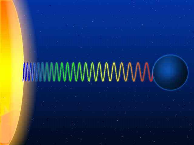 那么,牛顿理论是如何预测光线偏折的呢?牛顿理论认为,太阳附近的时空仍然是平直的,并且光是一种粒子,也会受到引力的作用。当光子从太阳附近经过时,太阳对它的引力充当向心力,使它的运动方向发生了改变,从而我们看到了光的偏折。 虽然牛顿理论可以这么解释光线偏折,但是它计算出来的结果却比实际测量值少了一半。如果大家感兴趣,我也可以出一篇广义相对论和牛顿理论关于光线偏折的计算。 引力红移广义相对论认为,引力红移的产生是因为时空几何,时空曲率大的地方钟走得更慢,造成了光的红移。而牛顿理论认为,光是一种粒子,在引力场中向上运动,它的动能就会向势能转换,而动能的减少会造成红移。
