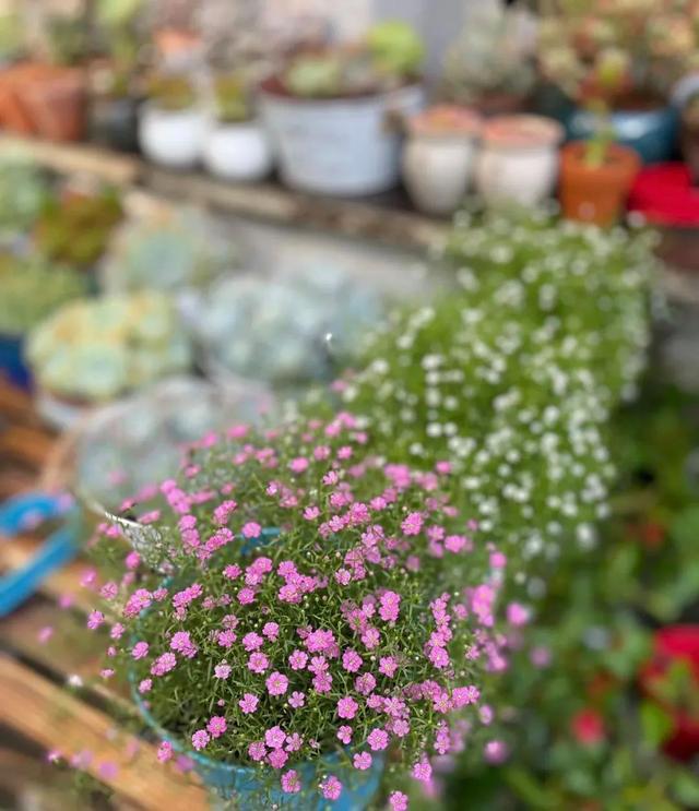 3、满天星 满天星就像是它的名字一样,一颗就可以开成大花球,像漫天的繁星一样好看,但是满天星控制不好浇水量,容易烂根坏死,不仅如此,还要会浇水,千万不可以从花瓣上面淋下去浇水,否则花会腐烂,花期缩短,要把满天星扒开,从根部往花盆里浇水,开满盆的满天星,需水量更大,必须每天浇水,稍不注意就会缺水,除此之外还要施肥,满天星需要仔细养护才能长得更好。