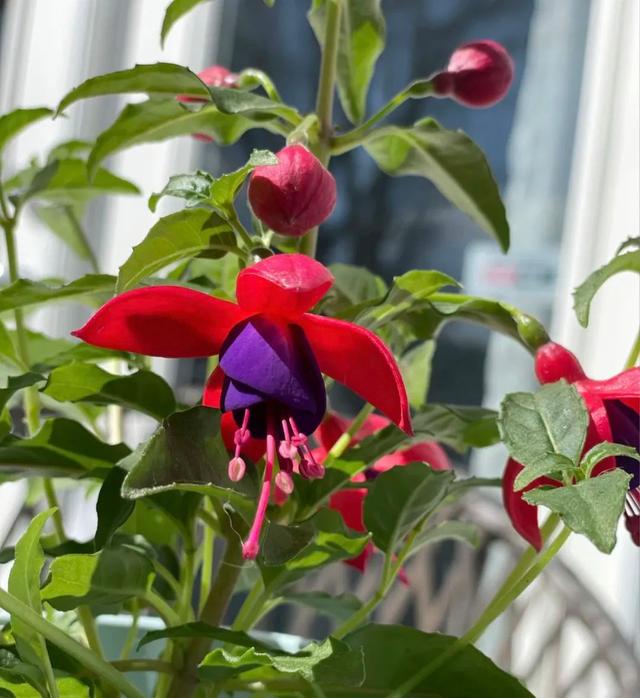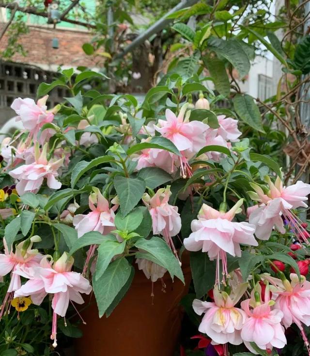 2、倒挂金钟 倒挂金钟可以说让大多数花友又爱又恨,它确实非常漂亮,花朵开放之后,就像一个个小灯笼挂满枝头,但是却特别难养,刚买回来的倒挂金钟需要在通风阴凉处静置一周左右适应环境,怕冷又怕热,特别是夏天闷热的环境很容易养死,温度超过25度之后,一定要遮阴通风,光照只能接受早上八点之前或晚上五点之后的阳光,夏天高温闷热情况下要适当控水,不能浇太多,也不能缺水,可以说是非常难养了。