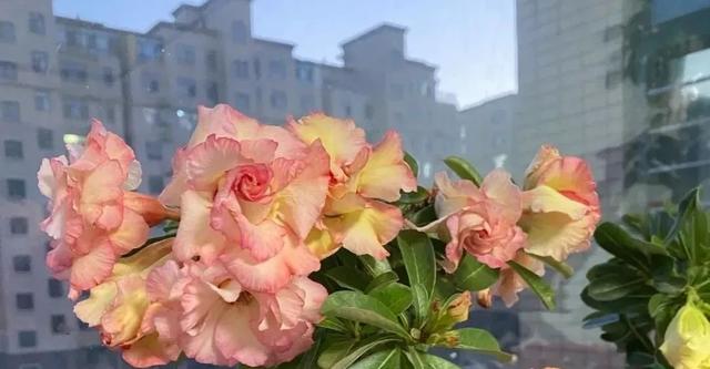 3、沙漠玫瑰 就沙漠这两个字而言,就可以看出沙漠玫瑰特别耐旱耐热,两月浇一次水,照样生长的很好,因为沙漠玫瑰的枝干部位有个大肚腩,可以储存非常多的水分。沙漠玫瑰开花非常的漂亮,有单瓣,有重瓣,各种颜色,并且花期超长,种植也很简单,拿到沙漠玫瑰苗子之后,准备15公分左右的盆种下就可以了,土壤用颗粒土或者沙土,这种疏松透水的土壤,种完浇透水,放在有光照的地方就可以,坐等开花。