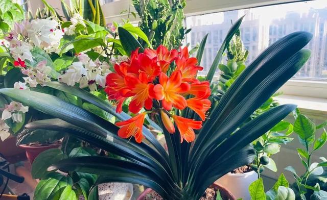 5、君子兰 君子兰株型独特,叶片能吸收甲醛、粉尘、灰尘以及有害气体,对室内空气起到了过滤的作用,释放纯净的氧气,摆放在家中和办公室里,都能很好的提升主人的品味。君子兰有比较发达的肉质根,厚叶片都是不喜水的表现,算是比较耐旱的植物,两月浇一次水也可以,像养仙人掌一样简单。
