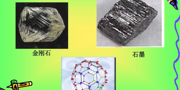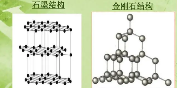 结构特点 金刚石是最为坚固的一种碳结构,其碳原子以晶体结构的形式排列,金刚石结构中的每个原子与相邻的4个原子形成正四面体。具有金刚石结构的晶体除了金刚石以外,还有硅、锗、α-锡等;石墨是元素碳的一种同素异形体,是原子晶体、金属晶体和分子晶体之间的一种过渡型晶体。
