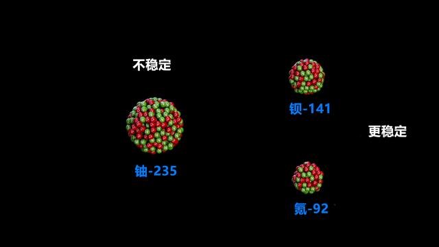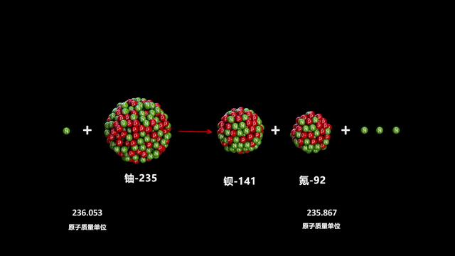 当你把较重的原子分裂成两个较轻的原子时,会释放出大量的能量。例如,铀的一种同位素铀-235是很好的裂变材料,当它受到中子的撞击时,它会分裂成三个中子和两个较轻的粒子:钡-141和氪-92。然后这些中子又可以去撞击其它铀-235,继续发生着核反应。通过这种方式,它可以形成连续的链式反应,产生越来越多的能量。