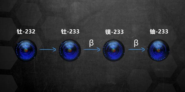 核废料问题国外许多人反对核电站,其中一个主要的原因就是核废料产生的钚可以制造大规模杀伤性武器。还有重要的一点是,由铀-238嬗变产生的重元素中,大多数半衰期都非常长,这意味着我们不得不将这些核废料埋在地下数百年甚至数千年,我们的安全才得以保证。这是核废料的大问题,也是人们不喜欢核电的一个重要原因。 钍为何比铀更优秀在这个反应堆中,天然存在的钍-232吸收了一个中子变成钍-233。然而,这种同位素并不是很稳定,它会经历β衰变成为镤-233。同样,这种同位素也是不稳定的,它将再次经历β衰变成为铀-233。我们从钍开始,绕了一圈又回到了铀。但与传统铀核电站不同的是,生成的铀都是可裂变的,没有铀-238的问题。最终,钍将全部转化为铀-233作为燃料消耗殆尽,也不大会产生相对危险的放射性废物。