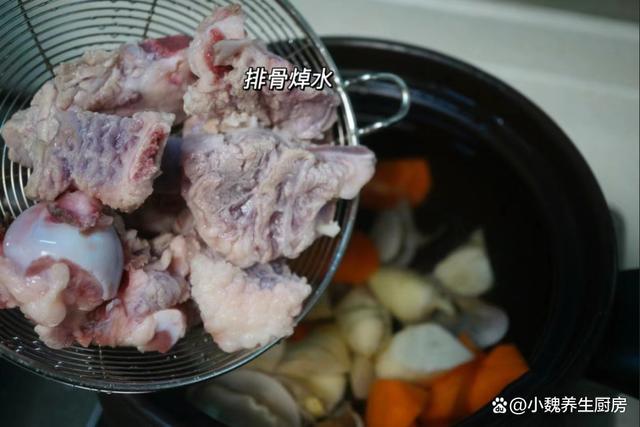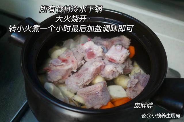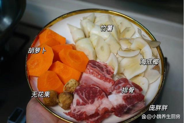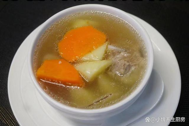 进入到冬季的12月的最后一周,马上要迎来圣诞节,元旦节,感觉一年就这样过完了,每年到了双旦节日期间,都是一年最冷的时候,长辈们说:一九二九不出手,三九四九冰上走,五九六九沿河看柳,一九从冬至那天开始算,正式进入到寒冬时期。天气越来越冷了,我们都穿上厚厚的羽绒服和棉衣,戴上围巾和手套,害怕脸部和手冻坏了,面临着寒冷的气候,我们要注意添衣御寒,饮食方面要多喝暖和和的羹汤。今天分享南方人最爱的一款靓汤——竹薯海底椰排骨汤,简单炖一锅,发挥几种食材的营养价值,好喝又鲜美,为身体储备各种营养,早食早受益。冬天多喝汤,郎中不用帮!建议要多喝这汤,滋补养人,增强免疫。  【竹薯海底椰排骨汤的具体做法】 食材清单:选购新鲜竹薯200克左右(竹薯是一种农村稀罕菜,外形长得像竹笋,口感非常清甜,许多广东人拿来炖汤),海底椰10克左右,温水少许,选购新鲜排骨350克左右,温水和冷水少许,胡萝卜几个,少许食盐,一丢丢胡椒粉,几个无花果,红枣几个,生姜若干片,料酒少许,食用油少许,香葱若干根,其他调味品。 摘自: www.ws46.com