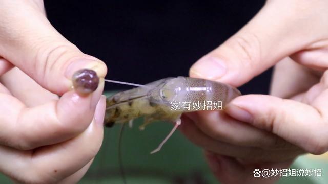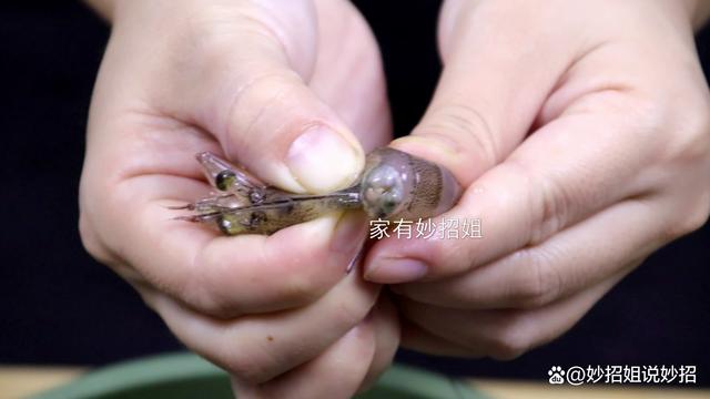接下来,我们只需要用抓住虾头的手挤压一下,这样虾头中的黑色虾包就被挤压了出来,这个黑包里都是一些虾的器官,是非常脏的。当虾包挤压出来后,我们再抓住它慢慢的往外拽,连接虾包的虾线,也就是虾背上的黑线,也会一并被拽出来。这个虾线是虾的排泄物,里面还会有各种微生物,也是非常脏的。将虾包和虾线都处理掉后,我们再清水反复冲洗几遍,这样大虾就清洁干净了。
