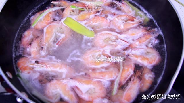 第三步:煮虾。 当锅中的水烧到七八成热,也就是锅底开始冒小气泡了,这个时候就可以把处理好的大虾倒入锅中煮了。很多朋友不知道要煮多久虾才会煮熟,但为了避免夹生的情况,就会一直煮。然而,长时间的煮,会导致虾肉变老变柴。其实煮上3~4分钟,看到虾身全红了,而且身体呈一个弯曲的状态,就表明虾被煮熟,可以关火了。
