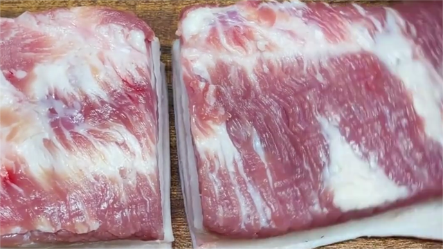 猪肉千万不要直接放进冰箱保存,教你小妙招,一年都保持新鲜口感。平时炒菜做饭时,五花肉也是经常用到的食材,能给菜肴增添丰富的口感和层次。然而,许多人在保存猪肉时存在误区,常常直接将其放入冰箱冷冻,导致口感变差、营养流失。今天,我们就来聊聊如何正确保存买回来的猪肉,让其在一年甚至更长时间内保持新鲜口感。  首先,我们需要明白,直接将大块猪肉放入冰箱冷冻并非明智之举。这样做不仅会导致解冻时间过长,影响烹饪效率,还会使猪肉在反复解冻和冷冻过程中失去原有的鲜嫩口感,变得干燥且硬邦邦。更为严重的是,营养成分也会在这个过程中大量流失,使得我们吃到的猪肉营养价值大打折扣。为了避免这些问题,我们需要采取一系列措施来妥善保存猪肉。 1,根据家庭人数和需求,将猪肉切成适量的小块。这样做的好处是,每次炒菜时只需取出所需的分量,避免了整块猪肉长时间暴露在室温下,减少了细菌滋生的可能性。切好的猪肉千万不要用水清洗。虽然清洗看似能让猪肉更干净,但实际上水中的细菌很容易附着在猪肉表面,增加其变质的风险。正确的做法是,直接使用干净的刀具和砧板进行切割。2,我们可以利用白酒和食用油来处理猪肉。在猪肉表面均匀地刷上一层白酒,这不仅能起到杀菌消毒的作用,还能在一定程度上提升肉质的口感。3,取适量食用油倒入小碗中,用小刷子沾取并均匀涂抹在猪肉表面,包括猪皮部分。食用油能有效地锁住肉中的水分,防止在冷冻过程中水分流失过多,从而保持猪肉的口感鲜嫩多汁。 4,涂抹完白酒和食用油后,下一步是用保鲜膜将每块猪肉单独包裹起来。在包裹过程中要确保没有气泡,营造出真空状态。这样既能隔绝空气中的细菌污染,又能减缓热量的传递,使猪肉在冷冻过程中保持较低的温度波动,延长其保鲜期。5,最后一步是将包裹好的猪肉放入大塑料袋中,并排除袋内的空气,然后将其存放在冰箱冷冻层。这样存放的猪肉可以在一年甚至更长时间内保持新鲜口感。 当我们需要食用猪肉时,只需取出一块放入冷水中解冻,几分钟内就能准备好下锅烹炒。这种方法既简单又实用,让我们随时都能享受到美味可口的猪肉。通过合理的分割、避免水洗、涂抹白酒和食用油以及真空包装等方法,我们可以有效地延长猪肉的保质期并保持其新鲜口感。希望大家能够掌握并运用这些方法,同时,我也会分享更多的保存食物的小妙招。
