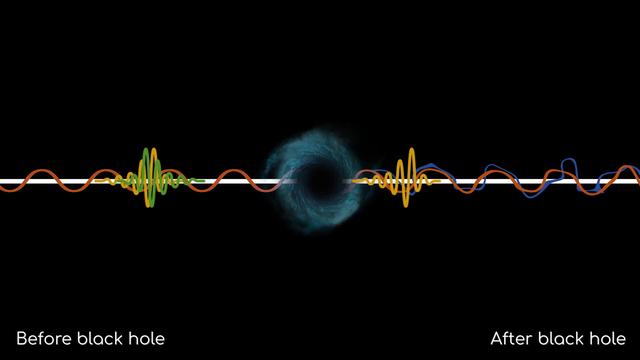 霍金想象在一个黑洞诞生之前的空间中画出一条穿越时间的线,沿着这条线共振的量子场,从黑洞存在之前一直延伸到它之后的未来。在黑洞诞生之前,一切都很正常,量子场是自由共振的,可以相互抵消。然而,黑洞的出现改变了空间曲率。霍金意识到,黑洞出现之后并不是所有共振都被抵消了,在远离黑洞的事件视界之外,他发现了与飞入太空的热辐射完全匹配的共振。