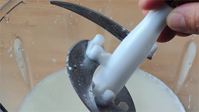4,我们加入适量的温水并盖上盖子,插上电源开始搅拌。温水的加入不仅能够软化油污,还能加速化学反应的进行。短短两三秒钟后,当你打开搅拌机盖时,会发现原本顽固的污垢已经被溶解得一干二净。
