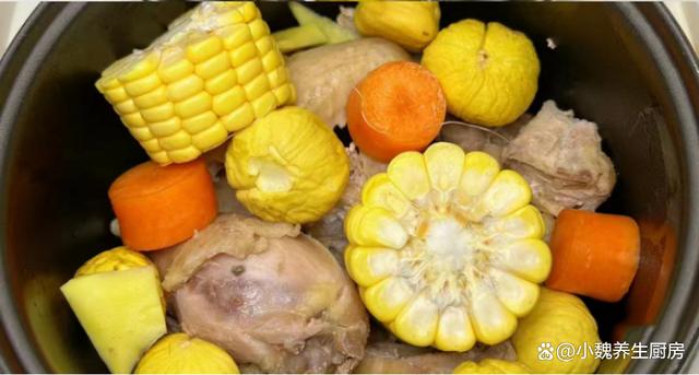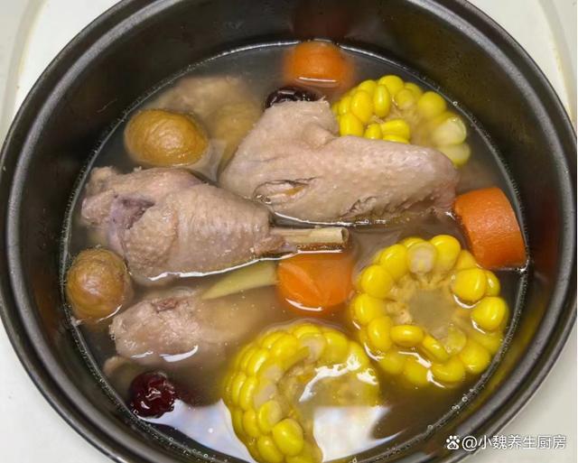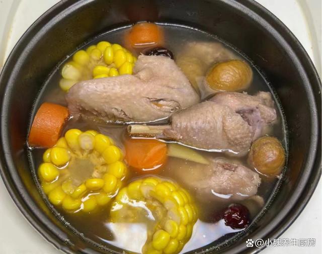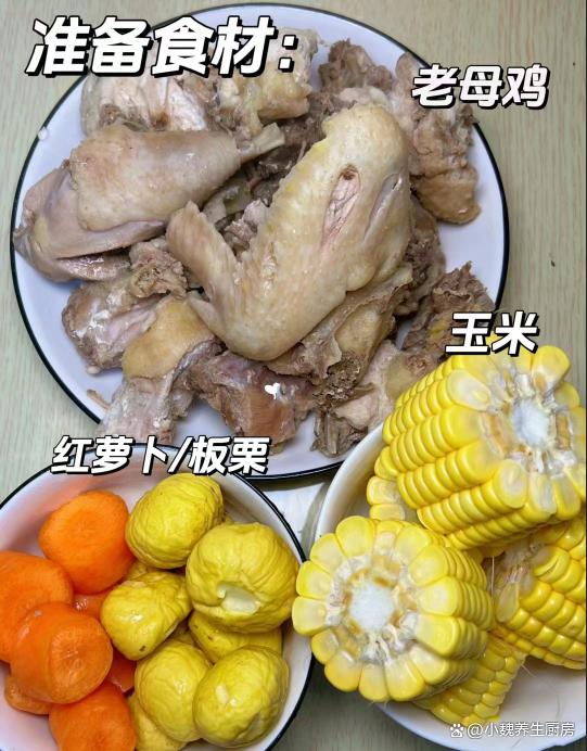 进入12月份的中旬过后,马上就要迎来冬至节气,今年12月22日是冬至日,是冬天非常关键的时候,温度从20度,直线降低到个位数,感觉一秒入冬,前几天还在穿短袖,这几天就穿上羽绒服,这个时候不能要了风度,丢失了温度。到了冬至节气以后,天气会越来越冷,气温骤降,寒潮来袭,容易出现雨雪天气,加上冬天还有一阵阵的狂风,让人的脸部被冻伤,感觉浑身都着凉,感觉冷飕飕的。  到了冬天,想要抵御寒冬,一定要多增添衣服,让自己的身体暖和起来,饮食上要做出改变,记得要多吃肉类,多喝各种鲜美滋补的汤品,才能抵御寒冷的冬天。俗话说,“冬日进补,来年打虎”,冬天是最佳的进补时期,补充大量的营养物质,能够储存在身体里,可以增强抵抗力,用来抵御寒冷的冬天。冬天建议要少吃凉菜,多喝各种鲜美的羹汤,比如说这款玉米红萝卜板栗炖鸡汤,鸡肉软烂脱骨,汤汁鲜美,广东人经常喝它。“冬至一碗汤,少往医院跑”,平常要多喝这汤,补足营养增强免疫。 【玉米红萝卜板栗炖鸡汤的食谱解析】食材清单:选购优质糯玉米一根(玉米是一种便宜的主食,玉米可以做成菜肴,还可以用来煲汤,多吃不会长胖),红萝卜1-2根,选购新鲜老母鸡800克左右(老母鸡是散养土鸡,养殖一年以上,非常适合来煲鸡汤,鲜美倍增,喝起来非常滋补养人),板栗100克左右(板栗是一种常见的食材,板栗的营养价值很高,适合用来炖汤,强身健体,平常一定要多吃),冷水少许,若干个红枣,料酒若干,适量食盐,一丢丢胡椒粉,葱姜少许,其他佐料。 正确做法: www.ws46.com 1:提前选购好老母鸡,玉米,板栗和红萝卜,先把红萝卜的外皮洗干净,去掉萝卜皮,切成大小相同的块状,备用。2:将玉米的叶子剥掉,去掉玉米须洗干净,切成若干块状,用清水冲洗干净,生姜洗净切成片状,红枣洗净备用。3:将板栗的外壳切一个口子,或者将板栗煮一会儿,用工具将板栗去壳,去掉多余的部位,也可以切成两半,备用。4:提前把老母鸡宰杀好,处理干净,剁成若干块状,鸡肉用清水冲洗掉血丝,锅中放入一些鸡肉,丢入姜片和葱结,加上适量料酒去腥,把鸡肉焯烫处理,这样炖出来的鸡汤不会腥。 5:准备好一个煲汤的电饭煲(有条件可以选择砂锅),放入一些红枣,红萝卜块,玉米和板栗,放入焯水好的鸡肉,加上纯净水足量,按下煲汤键炖煮,中途撇去一层油腻的浮沫。 6:继续炖煮1.5个小时,鸡肉炖煮至软烂,汤汁色泽变色,加上少许食盐和胡椒粉调味,不需要添加太多的佐料,焖煮一小会儿。 7:关火出锅,这款玉米红萝卜板栗炖鸡汤就可以食用了。 玉米红萝卜板栗炖鸡汤是一款特别鲜美的汤品,主要选用鸡肉和几种食材煲汤,保留食材的最大营养价值,汤鲜美味,营养又滋补,补肾益气,让你的身体暖和和起来。网友们,你们是否喝过这款玉米红萝卜板栗炖鸡汤呢?(文中配图都出自网络)