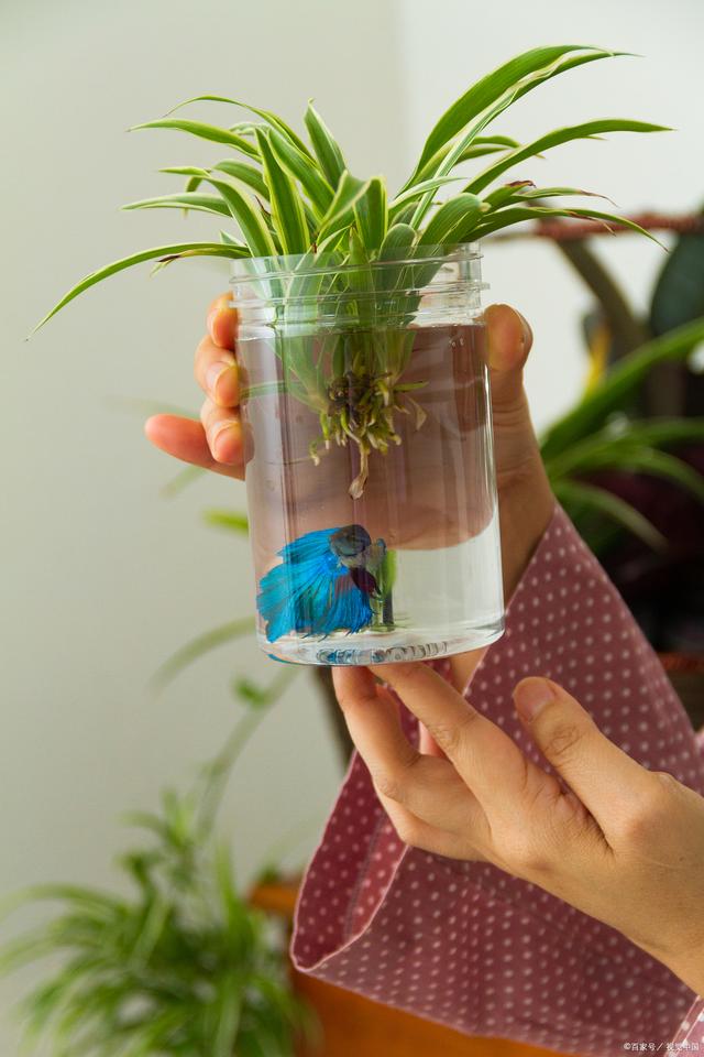 四、日常养护与管理换水与清洗:水培吊兰需要定期换水,以保持水质的清洁。一般来说,每隔一周左右换一次水即可。换水时,要将容器内的水全部倒掉,然后清洗容器和根系上的污垢。注意要用清水轻轻冲洗,避免损伤根系。 控制水位:在水培过程中,要注意控制水位的高度。水位过高容易导致根系腐烂,过低则会影响养分的吸收。一般来说,水位保持在根系的三分之二处为宜。随着吊兰的生长,可以适当调整水位的高度。 光照管理:吊兰需要充足的光照才能进行光合作用,促进生长。因此,要将水培吊兰放置在阳光充足的地方,如阳台或窗台。但夏季阳光强烈时,要注意避免直射阳光,以免叶片灼伤。 温度调节:吊兰适宜在温暖的环境中生长,室温保持在15-25℃之间最为适宜。冬季要注意保暖,避免温度过低导致吊兰生长受阻。 施肥与修剪:除了定期添加营养液外,还可以在生长旺盛期适当进行叶面施肥,补充养分。同时,要定期检查吊兰的生长情况,及时修剪枯叶和病弱枝条,保持植株的美观和健康。
