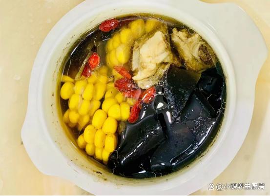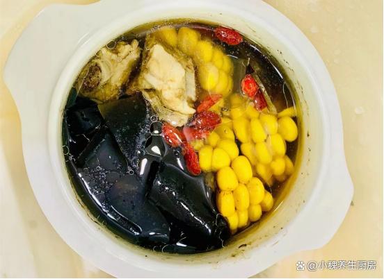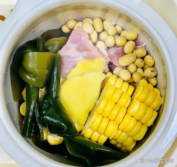 冬天已经到了最艰苦的时候——寒冬时节,据说到了十二月下旬,南方城市要开始下雪了,天气只会越来越冷,甚至会出现冰雹和大雪的天气,今年的冬天日子非常难熬。进入冬季以后,我们的身体出现乏力,四肢没有力气,一定要注意规律作息,记得要按时进补,多喝热腾腾的水果汤或鲜汤。今天推荐一款老少皆宜的汤品——海带玉米黄豆猪骨汤,四种食材炖一锅,汤汁更加鲜美,喝起来很舒服,广东人都爱喝。冬季进补,常给家人喝“这汤”,简单炖一锅,补足营养,增强免疫。  【海带玉米黄豆猪骨汤的具体做法】 挑选一些食材:选购优质干海带50克(海带是一种很受欢迎的藻类蔬菜,其中钙含量非常高,比牛奶都要高,海带用来煮汤更利于营养的消化,喝起来巨鲜美,家长要多给孩子吃),一根新鲜玉米,干黄豆45克左右,冷水和温开水少许,选购优质猪骨300克(可以挑选脊骨或排骨,猪骨的价格特别便宜,炖骨头汤非常合适,鲜美倍增,滋补养人,让你身体更加强壮),老姜一大块,香葱少许,料酒若干,一丢丢食盐和胡椒粉,优质枸杞子12克左右,其他。 具体制作顺序: 第一步:提前选购好海带,玉米,黄豆和新鲜猪骨,先把干海带放在容器里,加上适量温水泡发,搓洗掉表面的脏东西,洗净后打成结,备用。 第二步:将新鲜玉米的多余部位去掉,玉米里面有虫子,用盐水浸泡一会儿,切成若干块状,放在碗中备用。第三步:将老姜切成一些片状,香葱切成一些葱花,干黄豆用冷水泡发,枸杞子过冷水冲洗干净,控干表面的水分。第四步:提前把猪骨剁成块状,用冷水浸泡,或者用面粉揉搓,吸附掉里面的血腥物质。 第五步:另外起锅,锅中放入洗净的猪骨,放入葱结和葱结,加上足量的冷水,调入几勺料酒去腥,炖煮几分钟,冲洗掉表面浮沫即可。